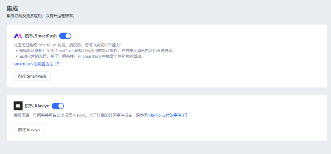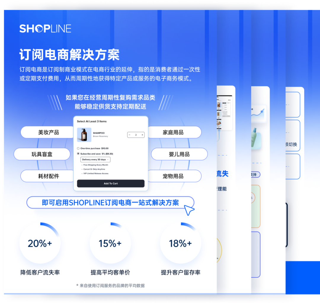 本周重点更新: 【订阅式电商-定期购买(Subscriptions)】 ·新增三种订阅优惠设置:订阅计划免运费;履约期数阶梯折扣;履约赠送免费商品 ·支持集成 SmartPush 和 Klaviyo,覆盖更全面的邮件营销场景 ·即将接入 Serve first 支付和 WISHES 支付,支持接受高风险支付 ·订阅合同批量搬迁,支付能力迁移升级 订阅电商是订阅制商业模式在电商行业的延伸,指的是消费者通过一次性或定期支付费用,从而周期性地获得特定产品或服务的电子商务模式。在订阅电商运营中,客户留存和高效履约始终是核心课题。要让订阅业务从“浅尝辄止”迈向“长效增长”,仅靠基础功能显然不够 —— 如何让优惠玩法更丰富多样以刺激转化?如何让营销触达更精准高效以提升留存? ADMA 讲师、Loyalty & Reward Co. 首席执行官 Philip Shelper 指出,订阅计划的成败往往取决于设计完善度 。他的建议是:订阅计划既需精准匹配消费者需求,也需突出个性化,从而持续吸引客户、降低流失风险。 此次 SHOPLINE 订阅式电商功能更新,精准契合完善订阅计划设计、强化个性化灵活性、优化计费与续约体验等核心需求,将为您的订阅业务进阶发展提供有力支撑。 01 免邮+赠品+分级折扣 多样优惠引导转化 灵活优惠设置,适配运营需求 ·订阅专享免邮,降低购物决策门槛:支持免邮或固定金额运费设置,可分区域、多条件调整,清晰区分订阅与单次购买的运费差异。 ·履约期数分级折扣,引导长久订阅:在单个订阅计划内,商家可以设置履约期数阶梯折扣,以引导顾客订阅更长的周期,从而提升 客户生命周期价值。 ·订阅专享赠品,轻松提供权益与试用:商家可指定在第 N 个履约周期时赠送免费商品,单个订阅计划可以配置多个奖励。 顾客普遍认为,订阅模式的长期总花费往往高于单次购买,这是它提供持续服务、附赠灵活权益的必然结果。而策略性定价可通过优化成本感知(如阶梯折扣、灵活权益等),让顾客更易认可订阅综合价值、接受长期支出。 ·日用品场景:针对纸巾等低价日用品,推出 “月度生活补给盒” 订阅服务,设置订阅终身免邮,消除 “运费占比高” 的决策阻碍,直接提升转化。 ·彩妆场景:推出 “全年口红订阅计划”,设计订阅前 6 期享 8 折、第 7 期开始享 7 折的阶梯折扣,明确标注长期订阅累计节省金额,锁定高价值客户,延长留存周期。 ·宠物用品场景:针对幼犬、幼猫成长需求,推出阶段性适配订阅,为 3 月龄幼宠订单履约时赠送 4 月龄粮试用装,为 6 月龄宠物赠送钙片小样,精准满足需求的同时曝光其他产品。 02 集成能力增强 对接 SmartPush 和 Klaviyo 商家现可以将订阅事件同步到 SmartPush 和 Klaviyo,包括订阅合同信息以及客户信息,以进行更精准地进行个性化邮件营销,直接提升顾客体验,从而降低订阅客户流失率。 当客户首次或再次成功创建订阅后,商家立即发送欢迎邮件,如 “Thanks for subscribing—here’s what to expect.”,明确订阅服务的后续体验(如配送周期、服务权益),快速建立客户对订阅服务的认知与信任 客户调整订阅配送频率(如从 “每月一次” 改为 “每两周一次”)后,商家发送变更确认通知,如 “Your delivery frequency was updated.”,确保客户知晓并认可变更,避免因 “不知情” 引发的投诉或退订。 更多支持上报的事件及自动化流程示例可进入 SHOPLINE 帮助中心查看 03 多一种支付选择 多一片增量市场 在覆盖 PayPal、Stripe、SHOPLINE Payments 等全球主流支付渠道基础上,SHOPLINE 新增 Serve first 和 WISHES 两种支付方式,且即将接入订阅式电商。这一升级可覆盖 40% 以上被传统支付拒绝的客户,还能在特定准入区域支持高风险产品类目,助力商家突破支付壁垒,精准开拓蓝海市场。 这既减少因支付障碍流失的潜在订单,又能抓住细分品类商机,助力商家切实拓宽订阅业务的营收边界。 04 搬迁无忧,无损耗业务过渡 ·批量迁移高效化:新增 “CSV 导入订阅合同” 功能,支持从Recharge批量迁移订阅合同,系统自动校验生成,助力商家统一高效管理,大幅提升迁移效率。 ·顾客留存最大化:可筛选 “未接管” 合同并一键触达顾客,引导其自主更新支付方式,避免强制重新签约的流失风险,有效保留客户资源。 ·支付迁移无感化:对接 Stripe、PayPal 时,同步迁移顾客原支付令牌,实现支付信息 “无感迁移”,免去顾客重新绑卡操作,最大限度减少订阅中断,稳固业务收入连续性。 SHOPLINE商家可以在店铺后台>>应用中找到订阅式电商-定期购买(Subscriptions)插件进行体验。 05 SHOPLINE陪伴您的订阅业务进阶成长 此次推出的多元优惠设置、邮件营销集成、新支付网关接入等功能更新,并非孤立的工具升级,而是 SHOPLINE 订阅式电商解决方案对商家全链路运营需求的深度响应。 无论是新手商家困惑于如何起步订阅业务,还是成熟商家受困于留存乏力、营收增长缓慢,让 SHOPLINE 订阅电商解决方案来帮你搭建高留存、稳收益的订阅运营体系。 零成本免费开启,新手安装插件即上手 解锁稳定复购 + 高留存订阅模式 客单价与留存率双向提升 选择 SHOPLINE 订阅电商解决方案 轻松开启订阅业务增长新路径! 以下为SHOPLINE订阅式电商解决方案速览,公众号后台回复关键词【订阅】,即可获取完整版,解锁功能介绍、核心亮点与实操指南! 往期推荐